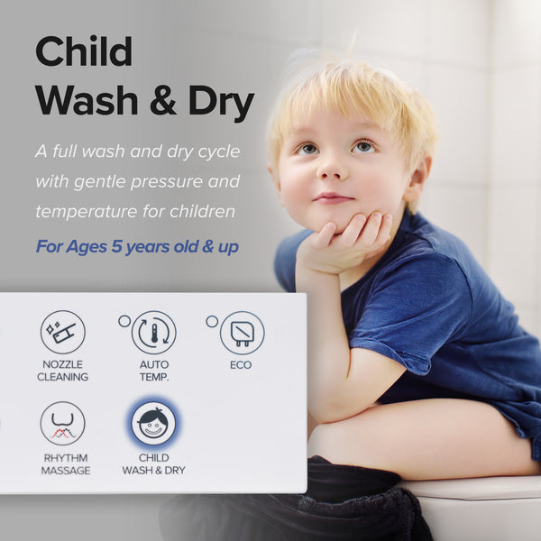 Dedicated "Child Wash" safely adjusts settings for kids, while "Auto Temp" gives guests a perfect, hands-free wash.